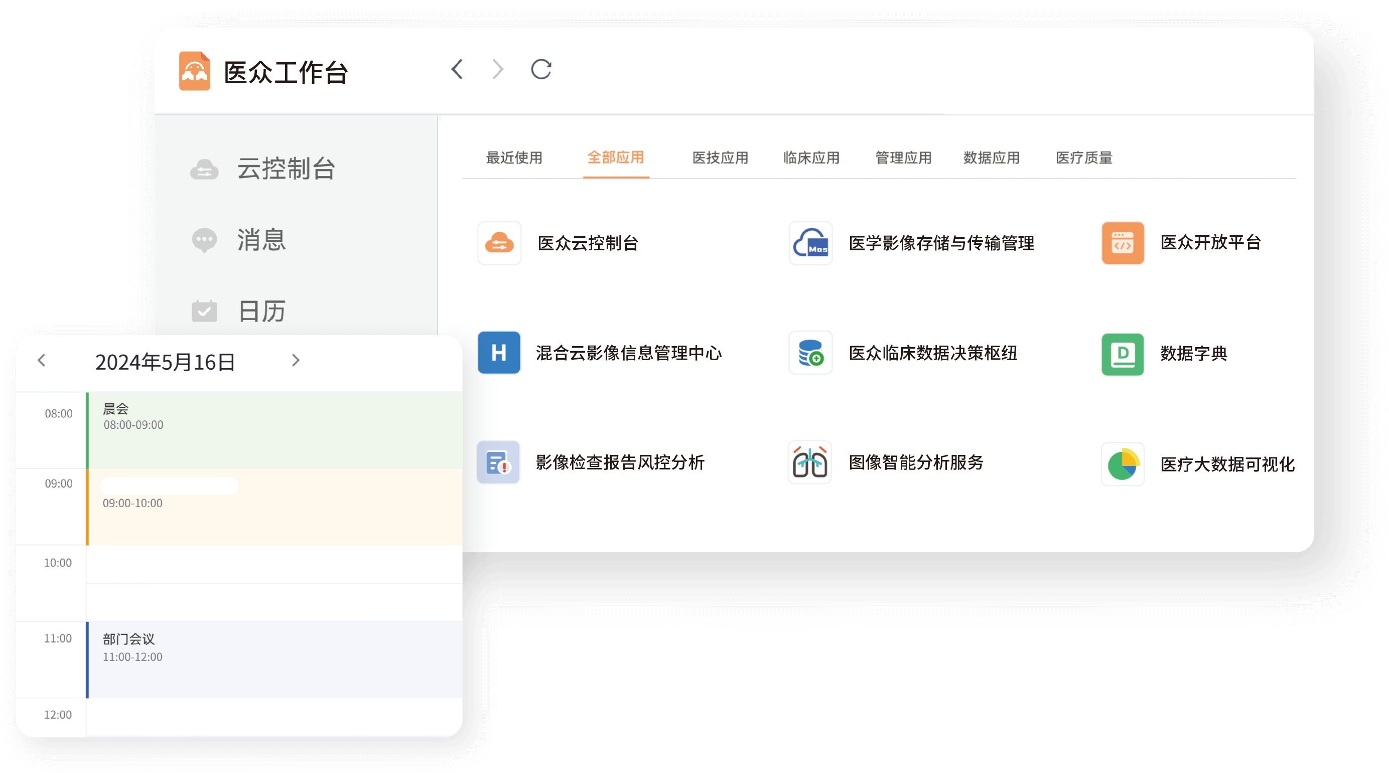 醫(yī)眾工作臺是承載醫(yī)眾全部數(shù)據(jù)能力與功能的應用框架,采用 Docker 技術(shù)進行分布式部署。每一位用戶都擁有完整且獨立的云端節(jié)點。