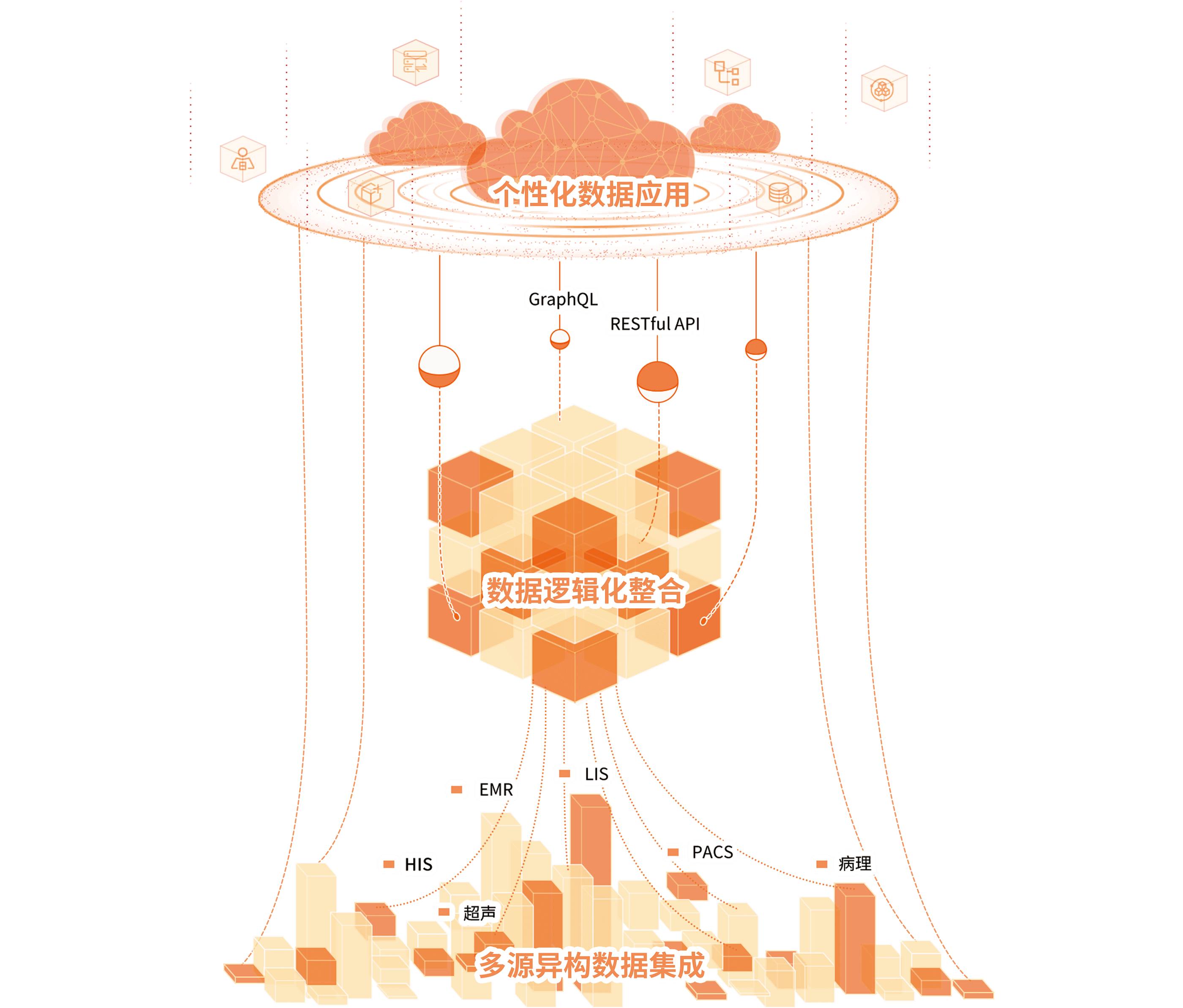 醫(yī)眾醫(yī)療數(shù)據(jù)服務(wù)采用 Data Fabric 數(shù)據(jù)編織的架構(gòu)理念,幫助用戶應對在數(shù)據(jù)資產(chǎn)化進程中產(chǎn)生的復雜性、分布式、多元化等因素,從單純的以數(shù)據(jù)應用為核心建設(shè)數(shù)字化,向體系化的數(shù)據(jù)服務(wù)能力建設(shè)轉(zhuǎn)型。